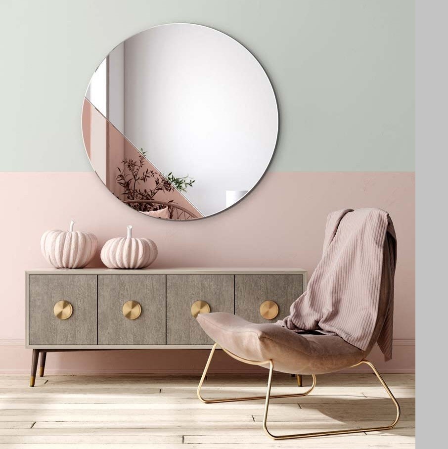 Specchio rotondo con inserto in specchio oro rosa, dal design geometrico e sofisticato. Ideale per arredare ingresso, salotto o camera da letto con un tocco caldo e contemporaneo. Il dettaglio color rosa aggiunge eleganza e carattere, creando un gioco di riflessi originale e armonioso. Perfetto per ambienti in stile moderno, scandi o glam, questo specchio decorativo unisce funzionalità e stile. Un elemento distintivo che illumina e valorizza qualsiasi parete con personalità e raffinatezza.
