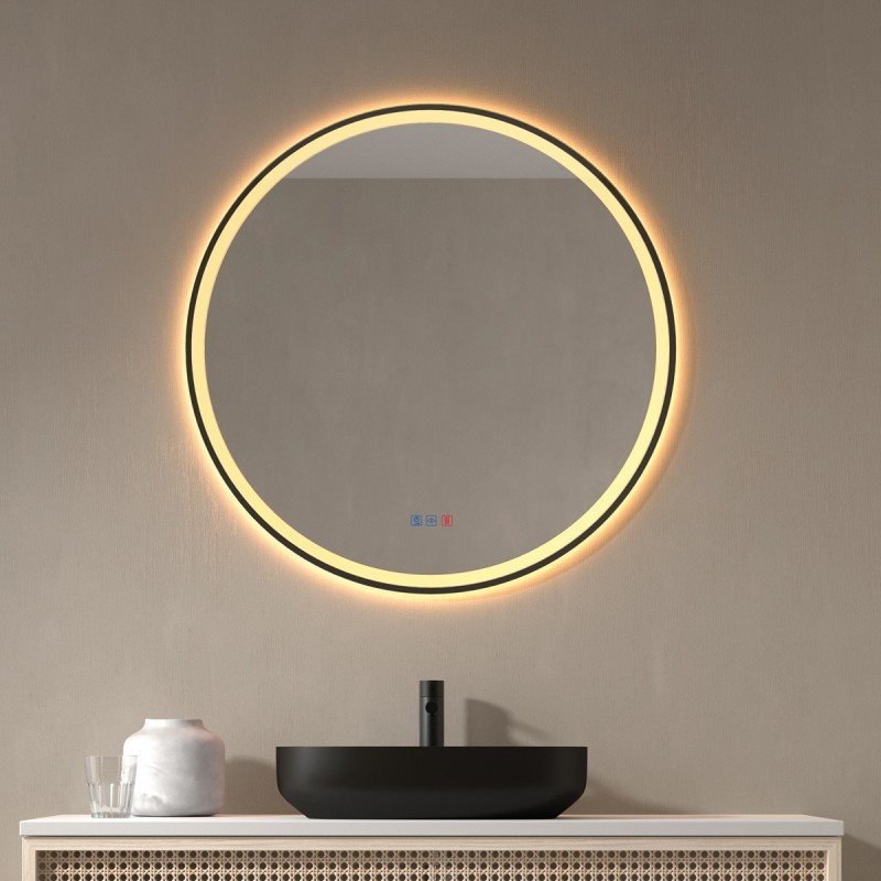 Specchio Rotondo Retroilluminato Contorno Nero
