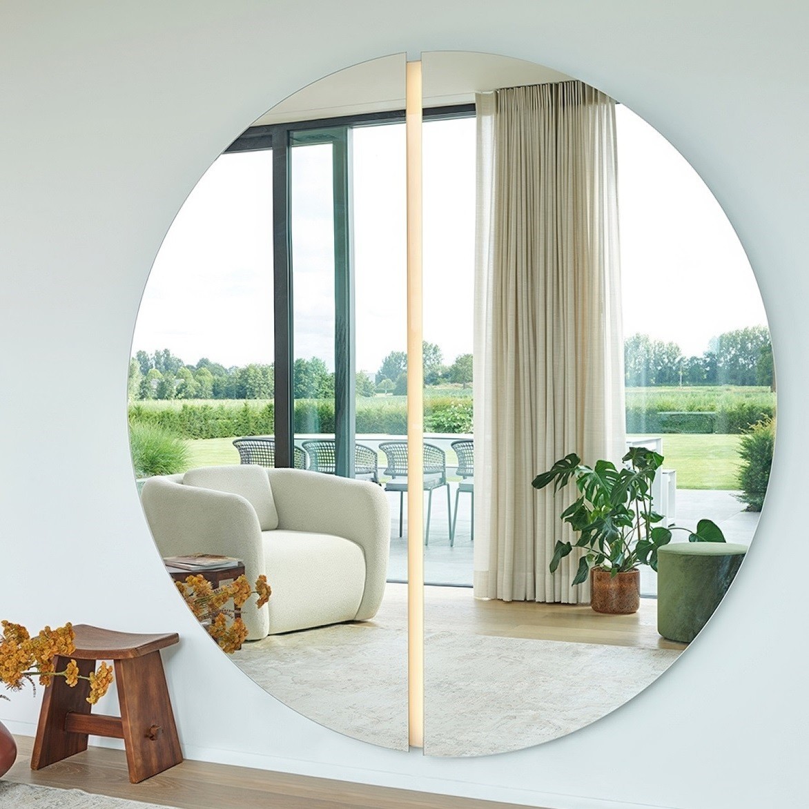 Luna è una scultura architettonica e minimalista, priva di qualsiasi elemento superfluo. È uno specchio durevole e senza tempo che aggiunge valore a qualsiasi ambiente.