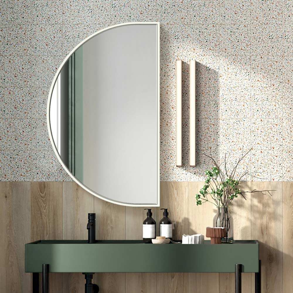 • La cornice è realizzata in mdf impermeabile, verniciata con una lacca poliuretanica a due componenti.