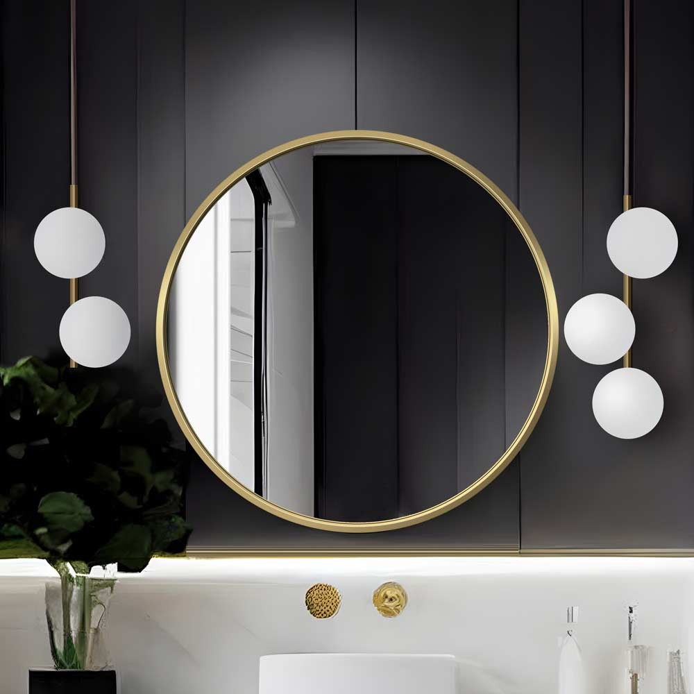 Questo sofisticato specchio da bagno rotondo con cornice dorata è la scelta ideale per arredare bagni contemporanei con uno stile raffinato e di tendenza. La cornice in oro satinato dona luminosità e un tocco di lusso, perfettamente in armonia con rubinetteria dorata e mobili scuri. Ideale per bagni moderni, di design, o ambienti in stile hotel 5 stelle, questo specchio decorativo da parete riflette la luce in modo elegante e amplia visivamente lo spazio. Realizzato con materiali resistenti all'umidità, unisce estetica e funzionalità nel più puro design italiano contemporaneo.